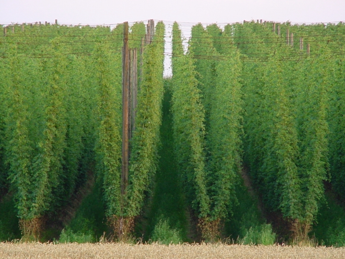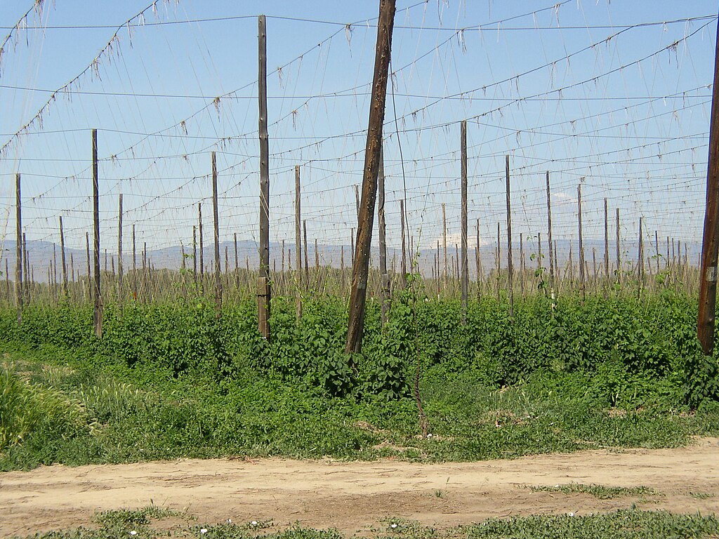 Early season hop yard in Washington state. Credit: Williamborg