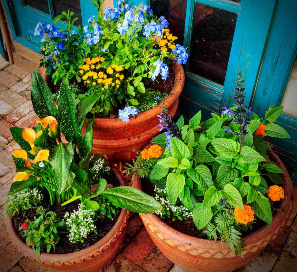 Blue plumbago is lovely planted in a pot all by itself, but also mixes well with other flowers and herbs. Credit: Chris Curtis